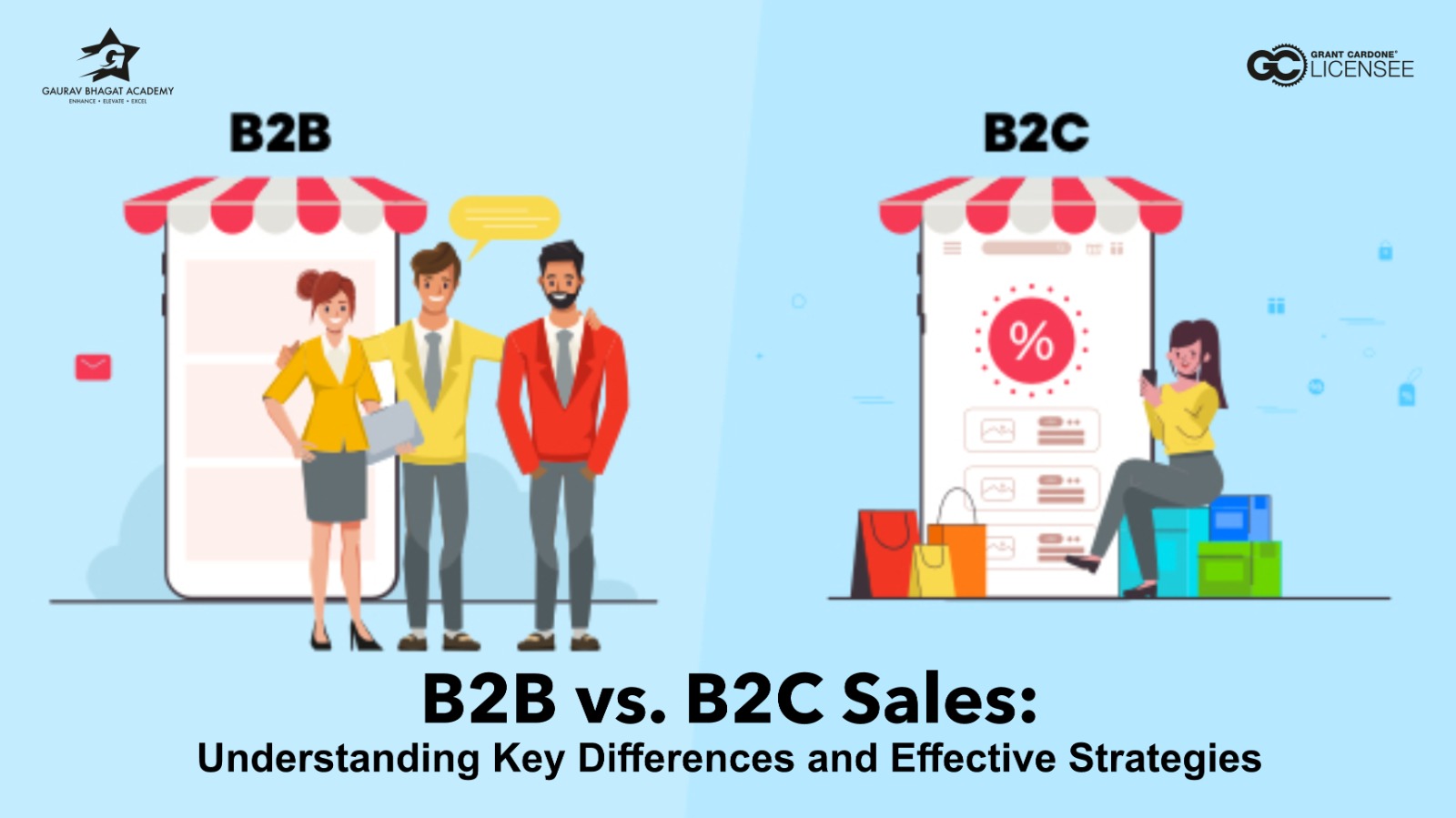 B2B emphasizes relationships and ROI; B2C focuses on fast sales and emotions. Adapting to your audience is the key to success. Join Gaurav Bhagat Academy’s sales training program to sharpen your skills.